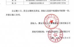 成雅新城人才公寓項(xiàng)目電梯設(shè)備采購及安裝招采,根據(jù)工程招標(biāo)投標(biāo)文件的有關(guān)法律、法規(guī)、規(guī)章的規(guī)定,經(jīng)雅安市名山區(qū)茶城建設(shè)工程有限公司競(jìng)爭(zhēng)性談判比選流程,比選工作已經(jīng)結(jié)束,中選人已經(jīng)確定,現(xiàn)將中選結(jié)果公示如下:中選單位名稱:四川通用電梯有限公司中選價(jià):970000元(大寫:人民幣玖拾柒萬元整)施工時(shí)間:待甲方通知中選質(zhì)量要求:合格項(xiàng)目現(xiàn)場(chǎng)負(fù)責(zé)人:劉夢(mèng)月自中選結(jié)果公示之日起一個(gè)工作日內(nèi),對(duì)中選結(jié)果無異議的,采購人將簽發(fā)中選通知書,并在五個(gè)工作日內(nèi)簽訂合同。雅安市名山區(qū)茶城建設(shè)工程有限公司2021年7月5日...